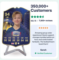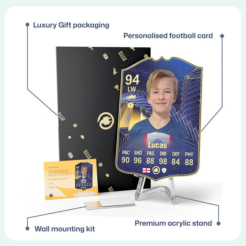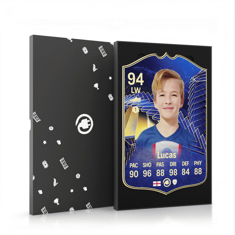 CardsPlug is home to the world’s favourite personalised football cards. Our easy football card builder lets you make a real life football card with your own name, photo, and skill ratings. With 100+ designs to choose from and some inspired by EA SPORTS FC 26 cards seen in EA FC 26, EA FC 25 and FC 24 as well as FIFA cards seen in games like FIFA 23 and FIFA 22.