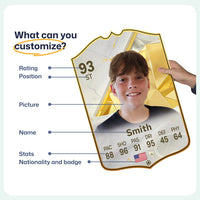 When it comes to personalising your card, the basic steps are to upload a photo and add a name to your card. Then you’ll add details like your player’s position and skill ratings out of 99 for each football skill shown on the card. Our online card builder makes this really easy. And if you aren’t a football card expert, don’t worry!