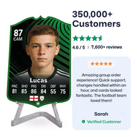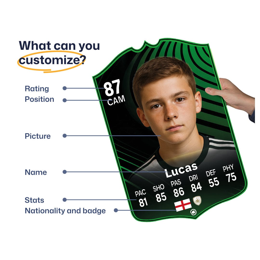 Yes! Our football card designers will remove the background from the photo you upload so it looks just like the football cards you might’ve seen games like EA FC 25, EA FC 24 or FIFA. We’ll also position the photo perfectly on the football card so it looks great. If there are any problems with the quality of your photo, we’ll reach out and let you know. Plus, our website's AI will remove the background on the image for visual purposes before purchase so you can see it without a background on the card.