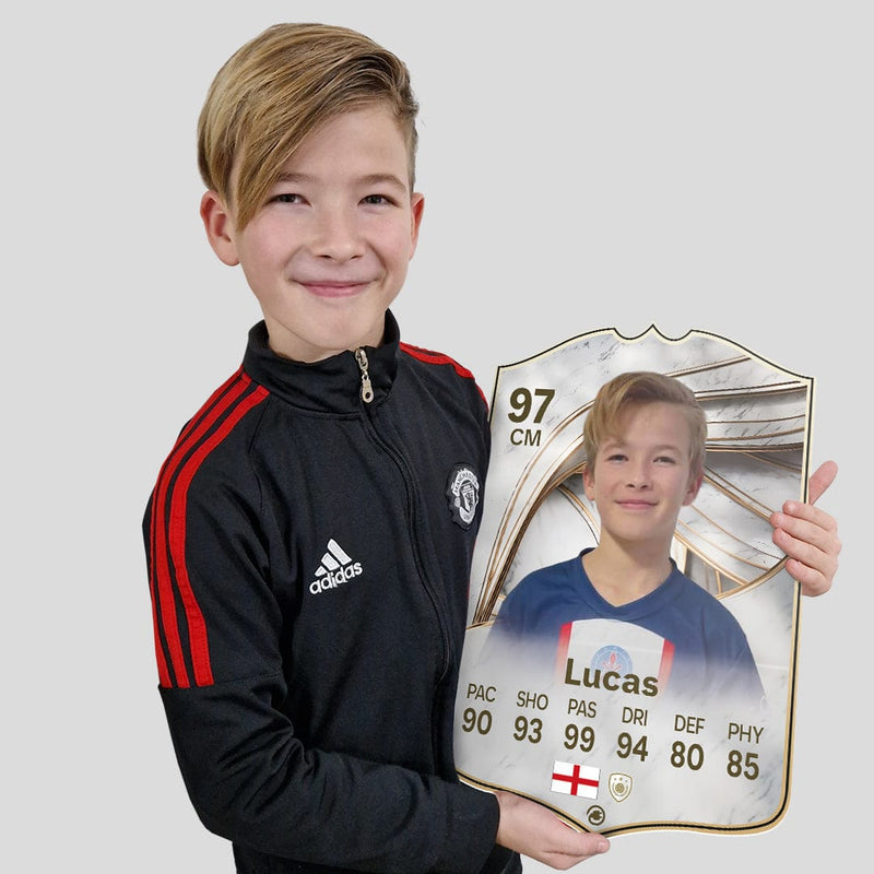 Yes! Our football card designers will remove the background from the photo you upload so it looks just like the football cards you might’ve seen games like EA FC 25, EA FC 24 or FIFA. We’ll also position the photo perfectly on the football card so it looks great. If there are any problems with the quality of your photo, we’ll reach out and let you know. Plus, our website's AI will remove the background on the image for visual purposes before purchase so you can see it without a background on the card.