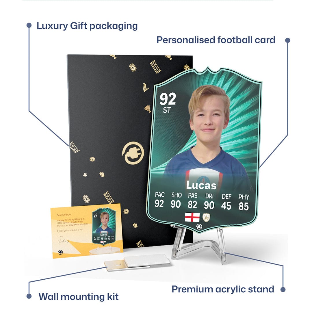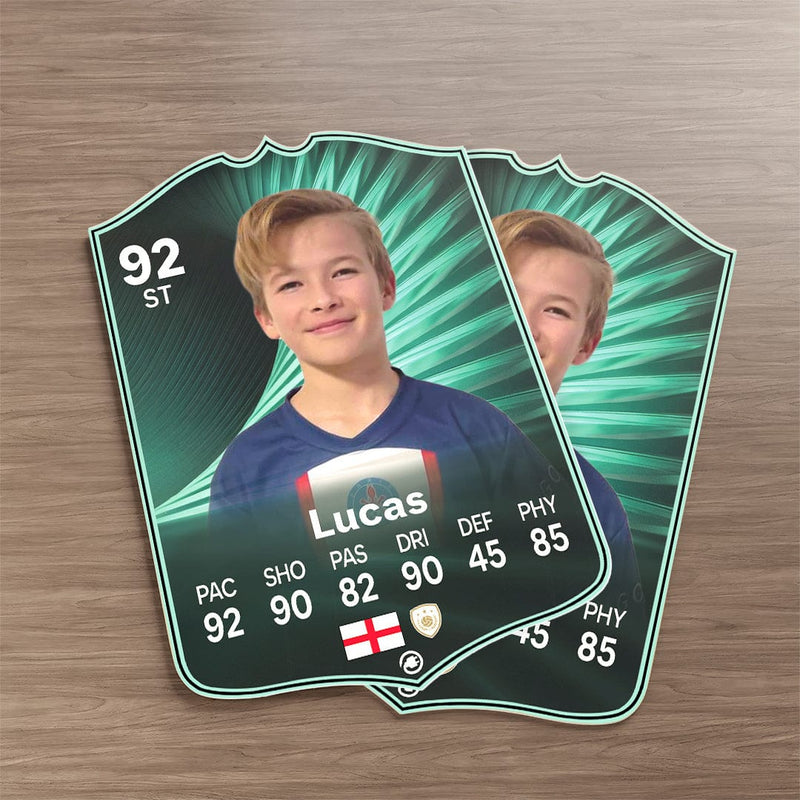 CardsPlug is home to the world’s favourite personalised football cards. Our easy football card builder lets you make a real life football card with your own name, photo, and skill ratings. With 100+ designs to choose from and some inspired by EA SPORTS FC 26 cards seen in EA FC 26, EA FC 25 and FC 24 as well as FIFA cards seen in games like FIFA 23 and FIFA 22.