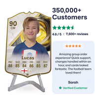 Yes! Our football card designers will remove the background from the photo you upload so it looks just like the football cards you might’ve seen games like EA FC 25, EA FC 24 or FIFA. We’ll also position the photo perfectly on the football card so it looks great. If there are any problems with the quality of your photo, we’ll reach out and let you know. Plus, our website's AI will remove the background on the image for visual purposes before purchase so you can see it without a background on the card.