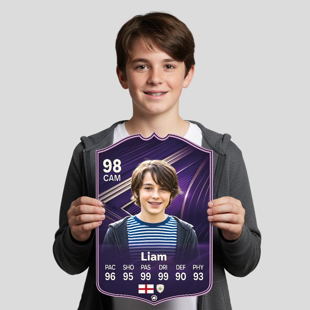 Yes! Our football card designers will remove the background from the photo you upload so it looks just like the football cards you might’ve seen games like EA FC 25, EA FC 24 or FIFA. We’ll also position the photo perfectly on the football card so it looks great. If there are any problems with the quality of your photo, we’ll reach out and let you know. Plus, our website's AI will remove the background on the image for visual purposes before purchase so you can see it without a background on the card.