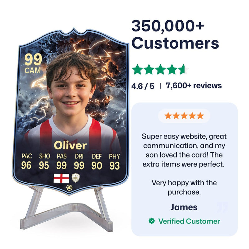 Once you’ve personalised your card, our design experts will edit your photo, design your card, and bring it to life in stunning quality. You’ll get a full preview before we print your card and every card’s quality is backed by our Gold Standard Guarantee. So far, over 350,000+ football fans agree: A CardsPlug football card is the ultimate football gift!